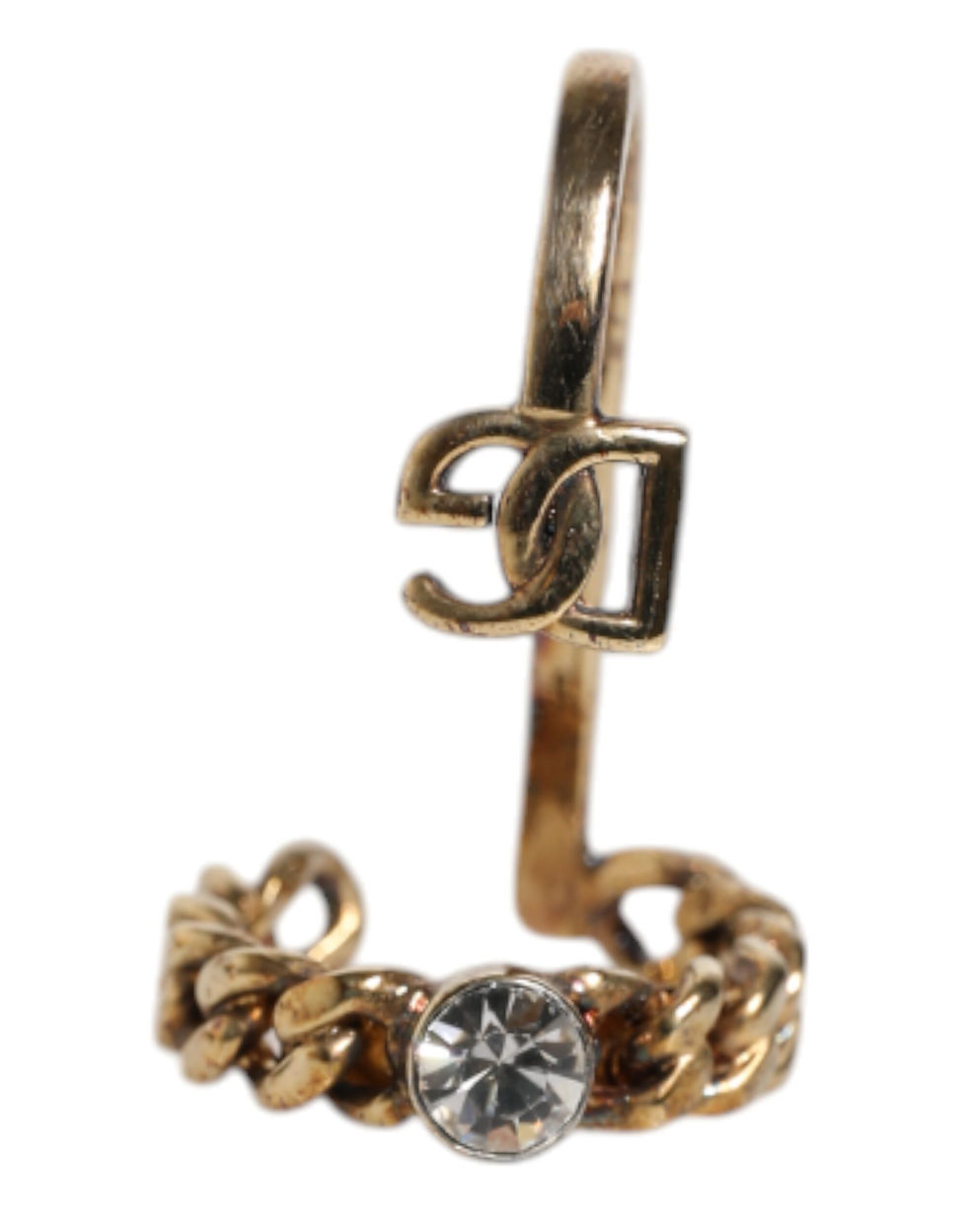 Gold Tone Engraved Logo Clear Crystals Adjustable Ring
