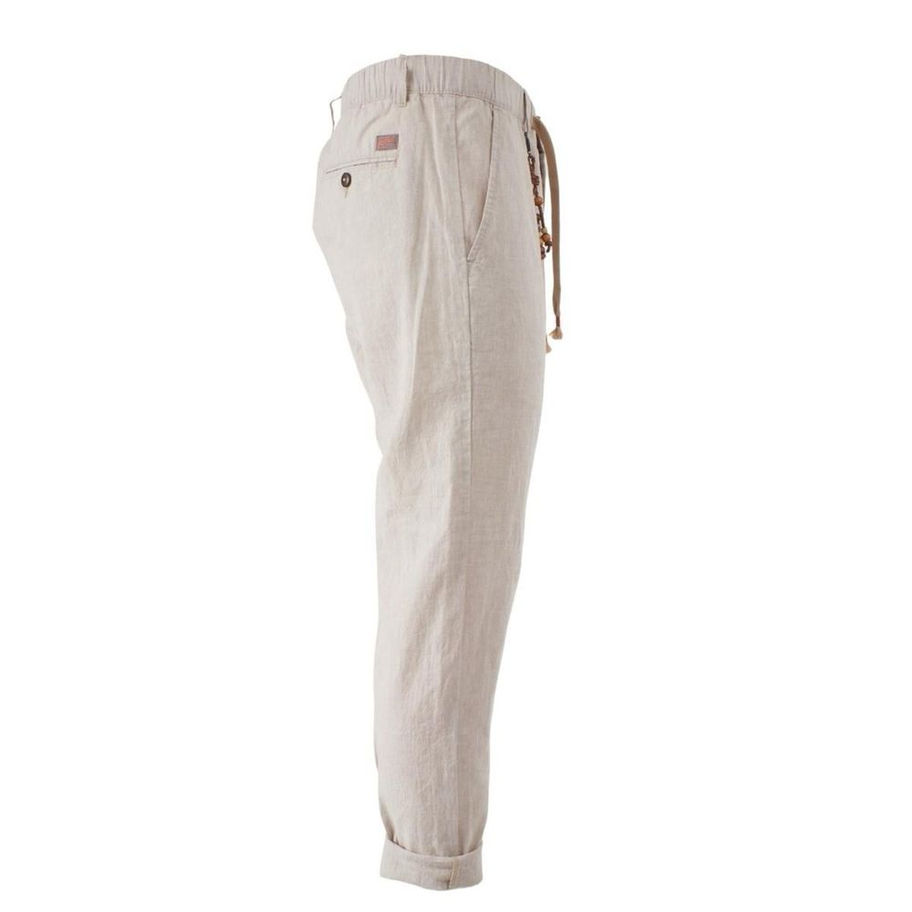 Embark on a journey of style and comfort with Yes Zee’s latest creation. These beige trousers blend the natural textures of linen and cotton, offering a breathable and sophisticated addition to your wardrobe. Their 4-pocket design, coupled with a sleek front button and zipper closure, showcases not only utility but also a touch of luxury with the leather keychain accessory. Perfect for a man who appreciates the finesse of fine fabrics and the craftsmanship of BD origins.