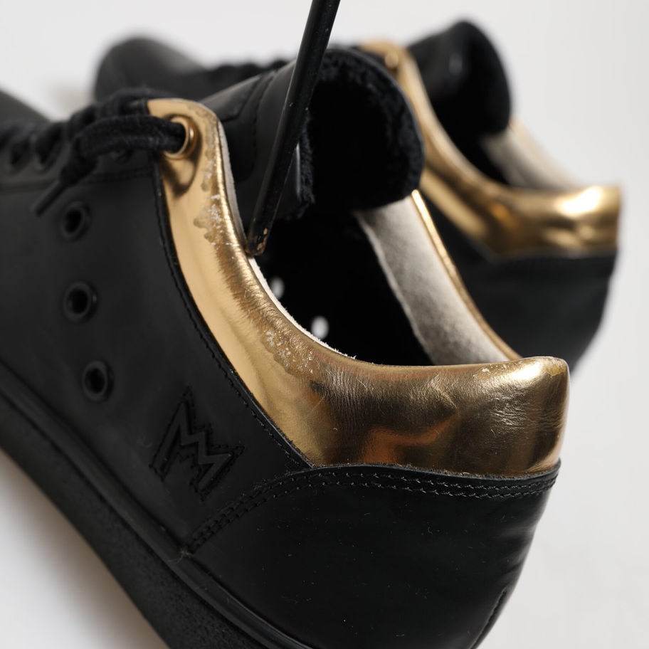 Black Gold Lace Up Low Top Women Sneakers Shoes