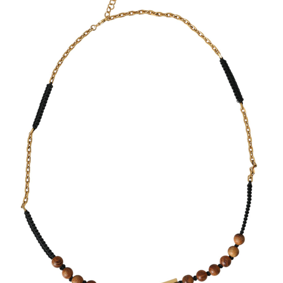 Gorgeous brand new with tags, 100% Authentic Dolce & Gabbana men’s beaded chain necklace. Color: Black, Gold Model: Beaded chain necklace Material: Wood, Brass Length: 65cm Lobster closure Logo details Made in Italy Very exclusive and high craftsmanship