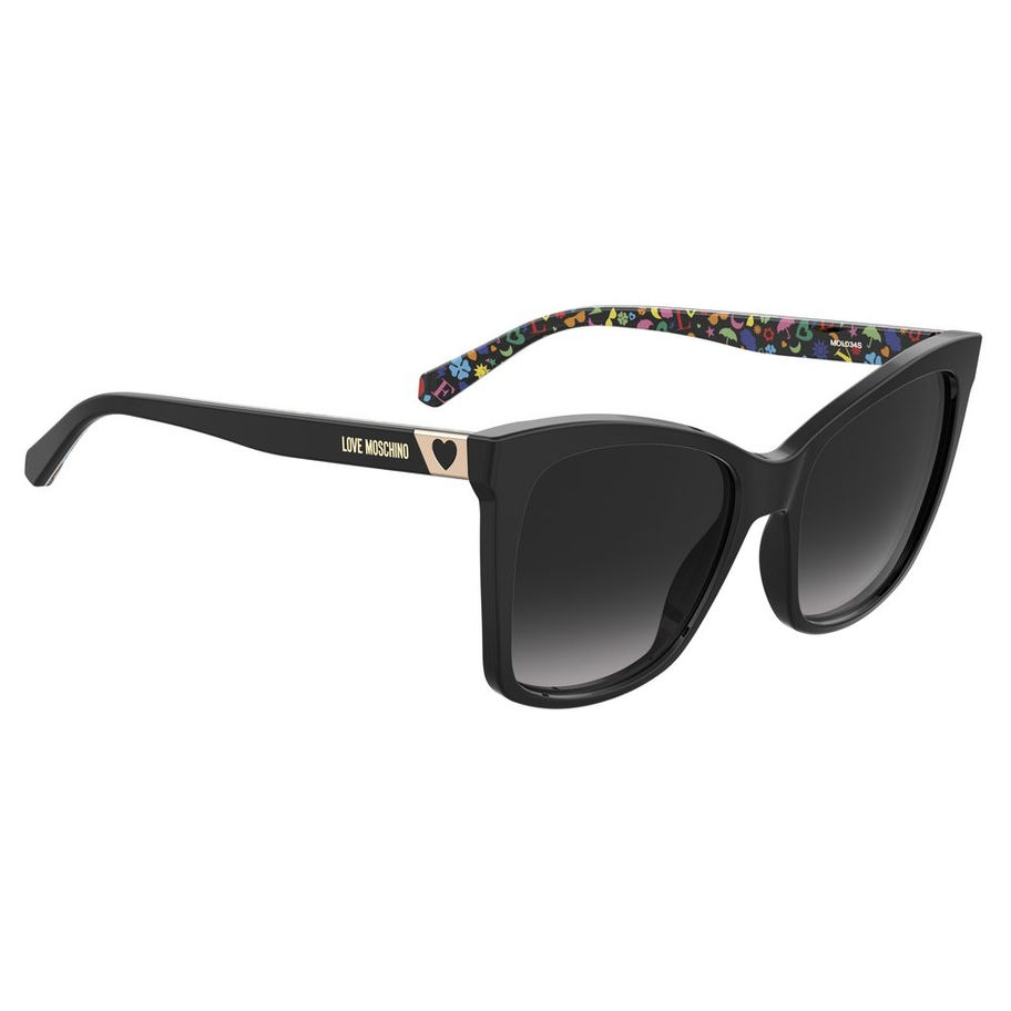 SUNGLASSES LOVE MOSCHINO WOMEN MOL034S807F59 (Lens/Bridge/Temple) 55/17/145 mm. Material: ACETATE. Colour: BLACK. Measures (Lens/Bridge/Temple): 55/17/145mm. BLACK. 100% UV PROTECTION