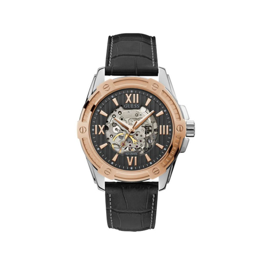 Type of mechanism: AUTOMATIC. Display: ANALOGICAL. Material Of Case: STAINLESS STEEL. Colour Of Case: GREY. Material Of Bracelet: LEATHER. Colour Of Bracelet: BLACK. Dial Colour:BLACK. Glass type: MINERAL. Clousure: BUCKLE. Water resistence: 5 ATM. Diameter dial: 45MM. Special Functions:Wonderful Words Brachet