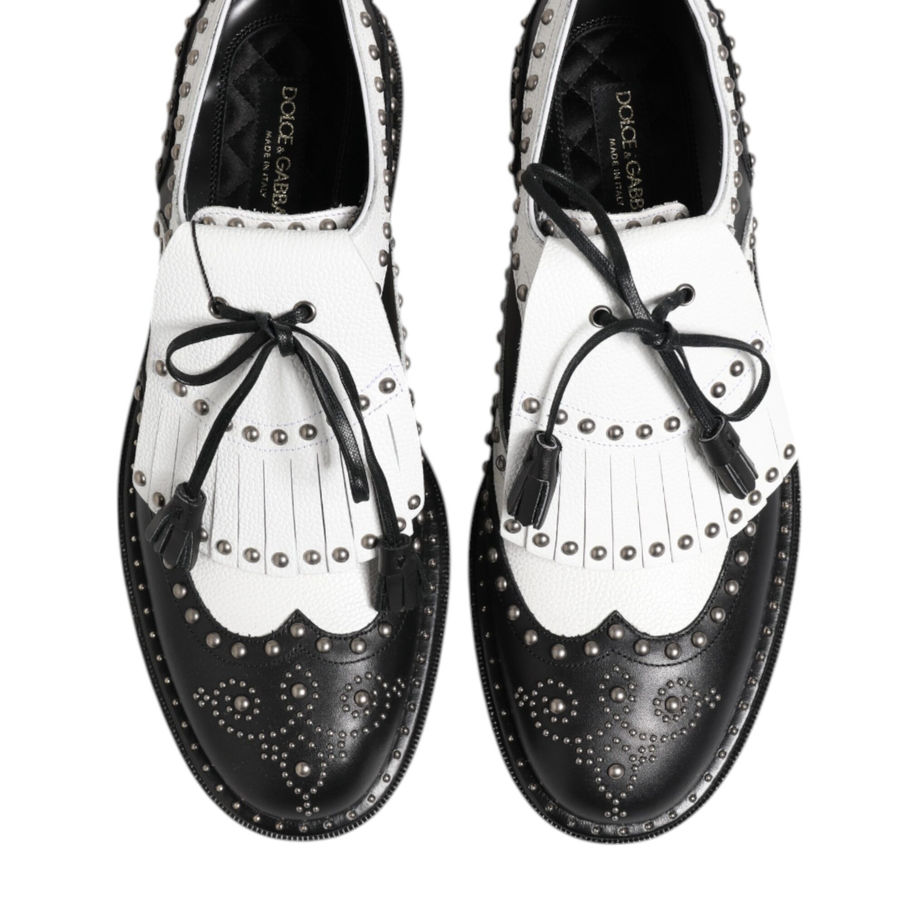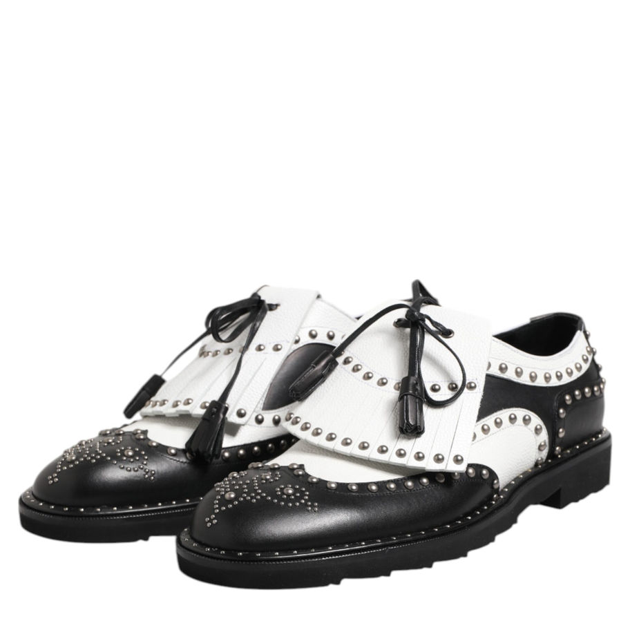 Gorgeous brand new, 100% Authentic DOLCE & GABBANA lace up studded derby shoes. Model: Derby dress shoes Color: Black, White Material: 100% Calfskin Leather Lace up closure Logo details Made in Italy Very exclusive and high craftsmanship