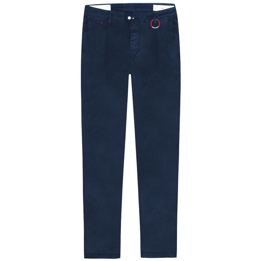 Tramarossa Alberto trousers in slightly stretch dark blue cotton, button and zip fastening, two side welt pockets and two back pockets, suede patch on the back.