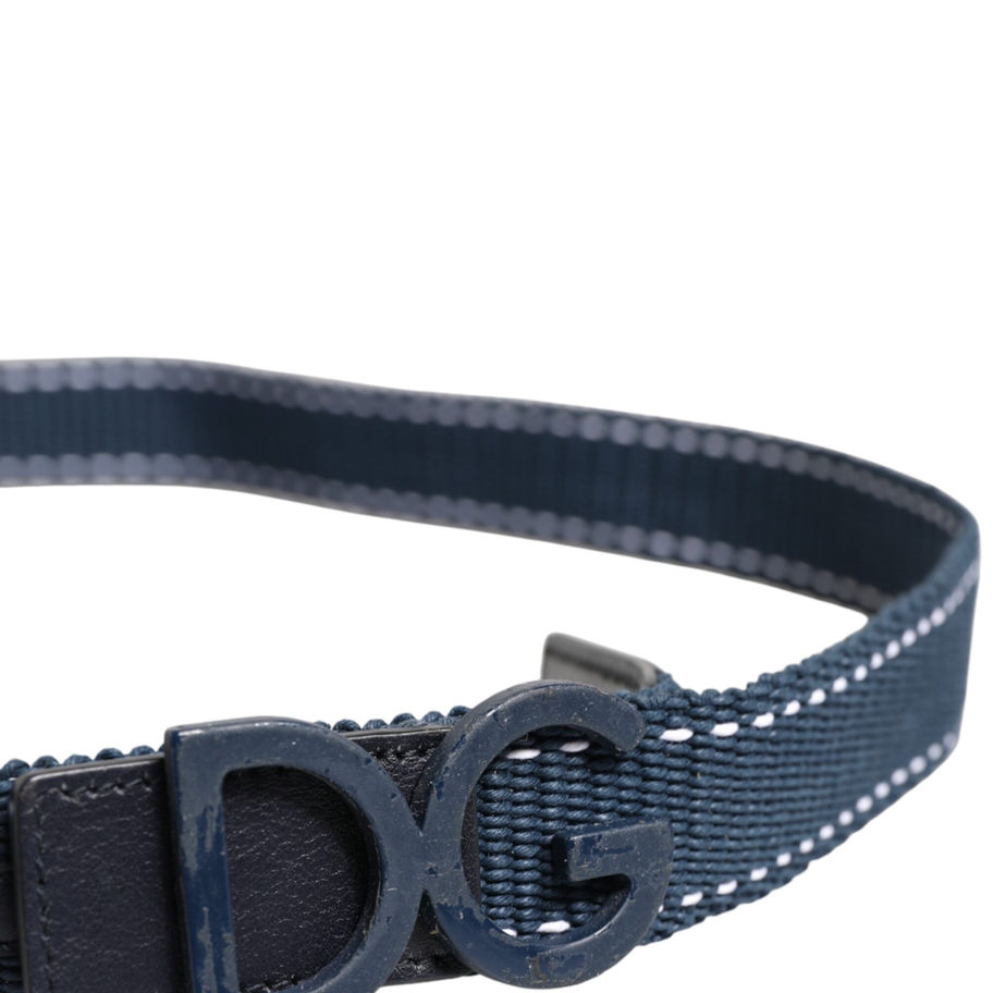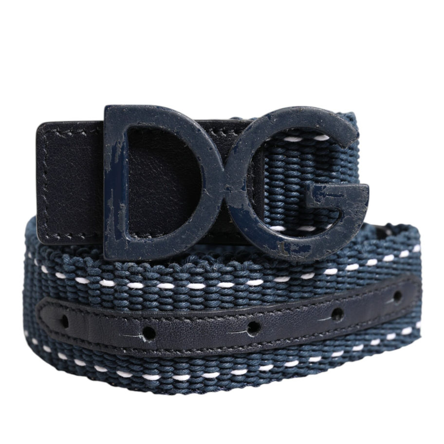 Blue Cotton Leather DG Logo Metal Buckle Belt
