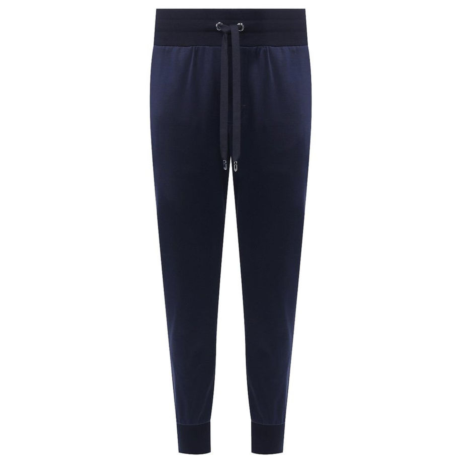 Dolce & Gabbana silk and cotton blend trousers with drawstring, ribbed elasticated ankles, two side pockets plus one on the back, embroidered logo on the back