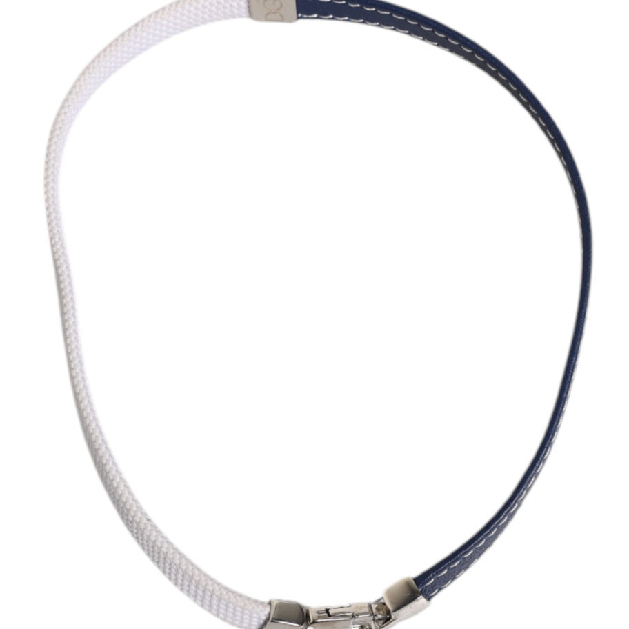 Gorgeous brand new, 100% Authentic Dolce & Gabbana leather bracelet, with flat lobster clasp made of silver alloy were decorated with an engraved DG monogram. Model: Leather bracelet Material: 40% Polyester 40% Cows Leather 20% Real Brass Color: Blue, White Flat lobster clasp Logo details Made in Italy