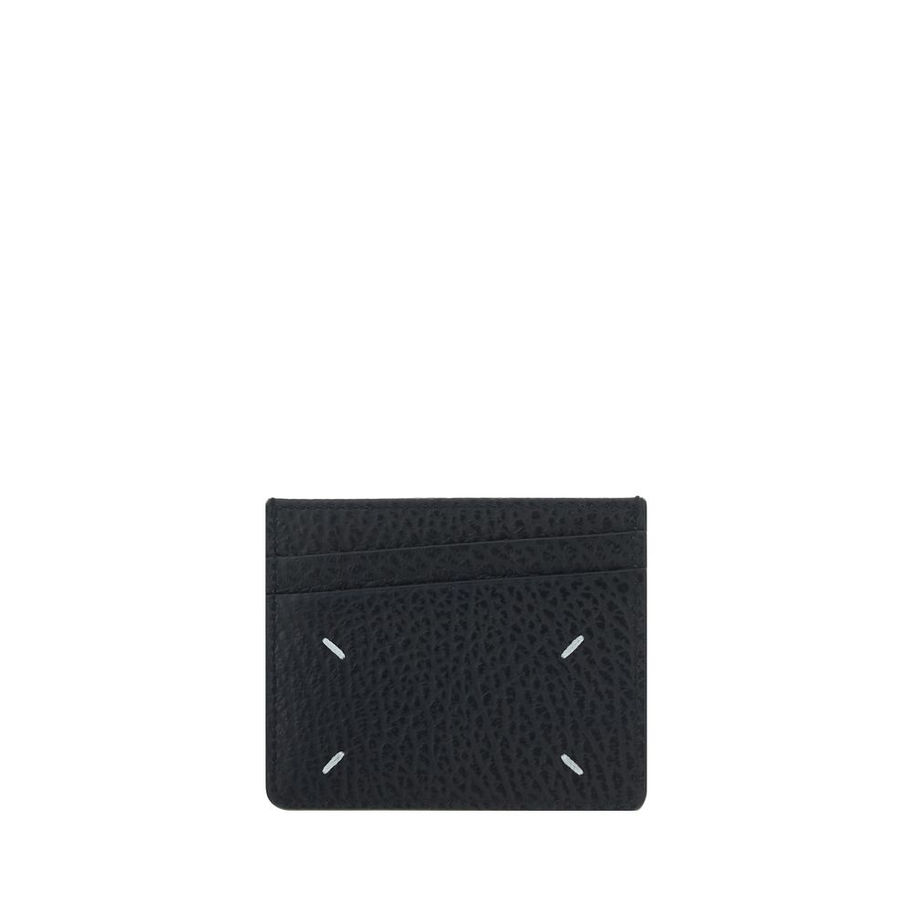 Calfskin Card Holder by Margiela, asymmetrical card slots on front and back, iconic brand contrast stitching, grained leather design.