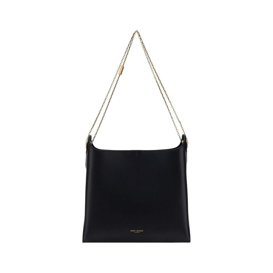 Calfskin Chain Shoulder Bag by Saint Laurent features double sliding chain shoulder straps, concealed interior closure, iconic brand monogram press-stamped on front.