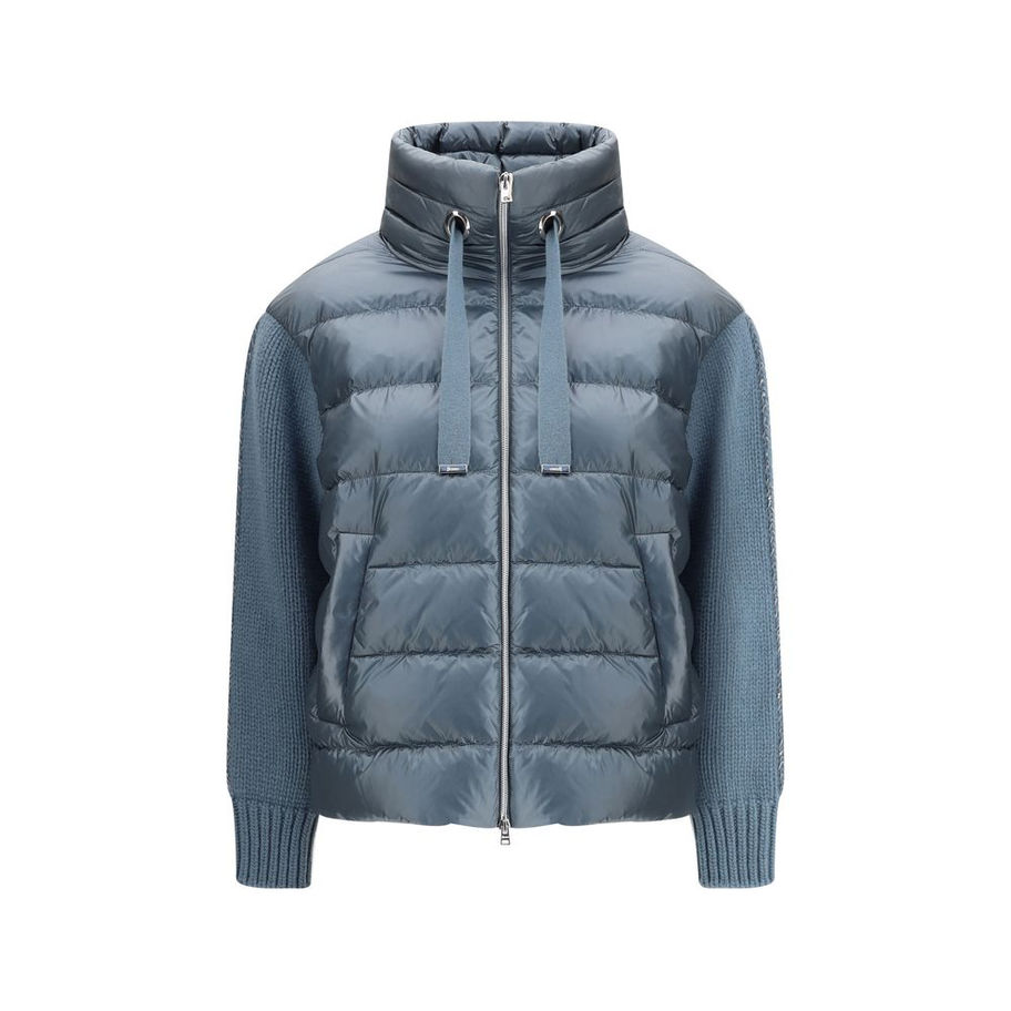 Herno’s Down Jacket features wool sleeves with ribbed cuffs for a touch of warmth and comfort. The high collar is adjustable via drawstring, while the front closure with a double-slider zipper ensures practicality and versatility. Two side welt pockets and an adjustable hem with internal drawstring complete the design for a customized fit and optimal protection from the cold