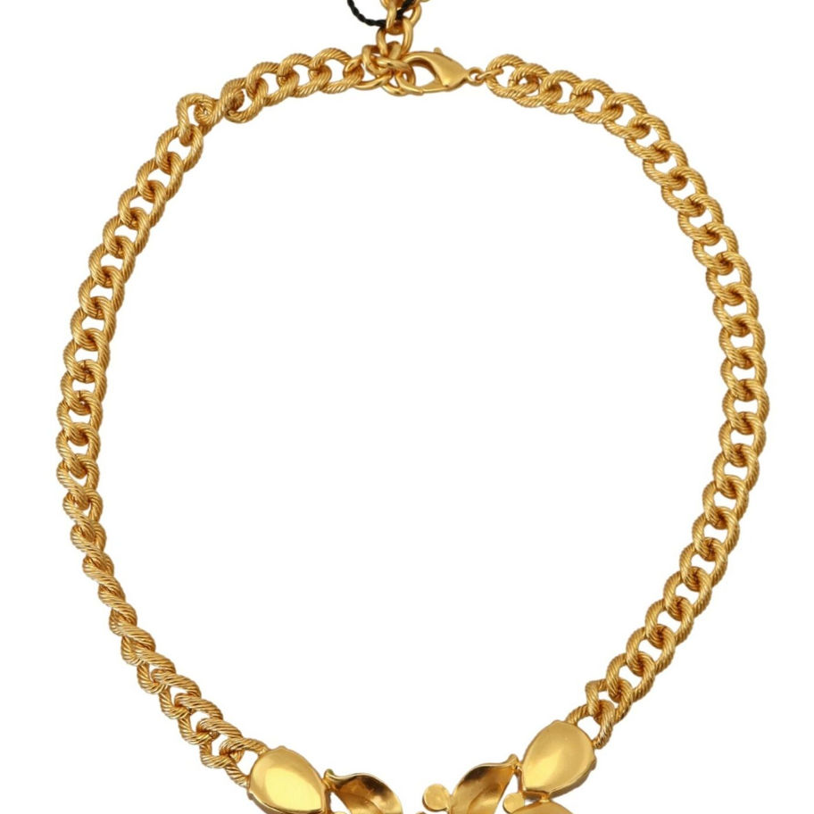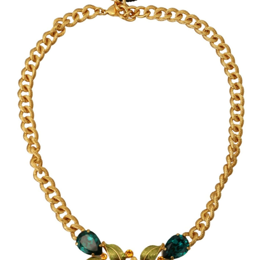 Indulge in the opulence of Dolce & Gabbana with this stunning gold-tone necklace. Expertly crafted by the brand’s artisans, this hypoallergenic piece features an exquisite floral fruit motif, blending classic charm with modern elegance. A chic piece perfect for adding a touch of glamour to any outfit.