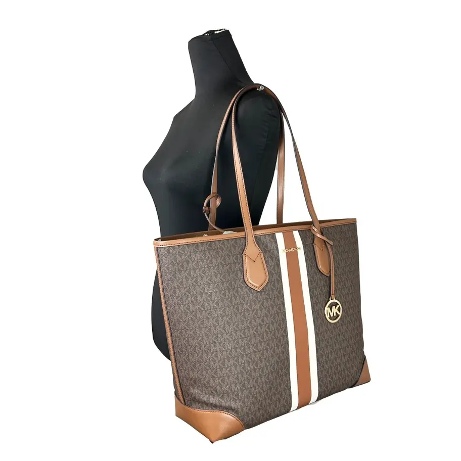 Features: Removable Pouch, Center Stripe, Double Handles, MK Charm
