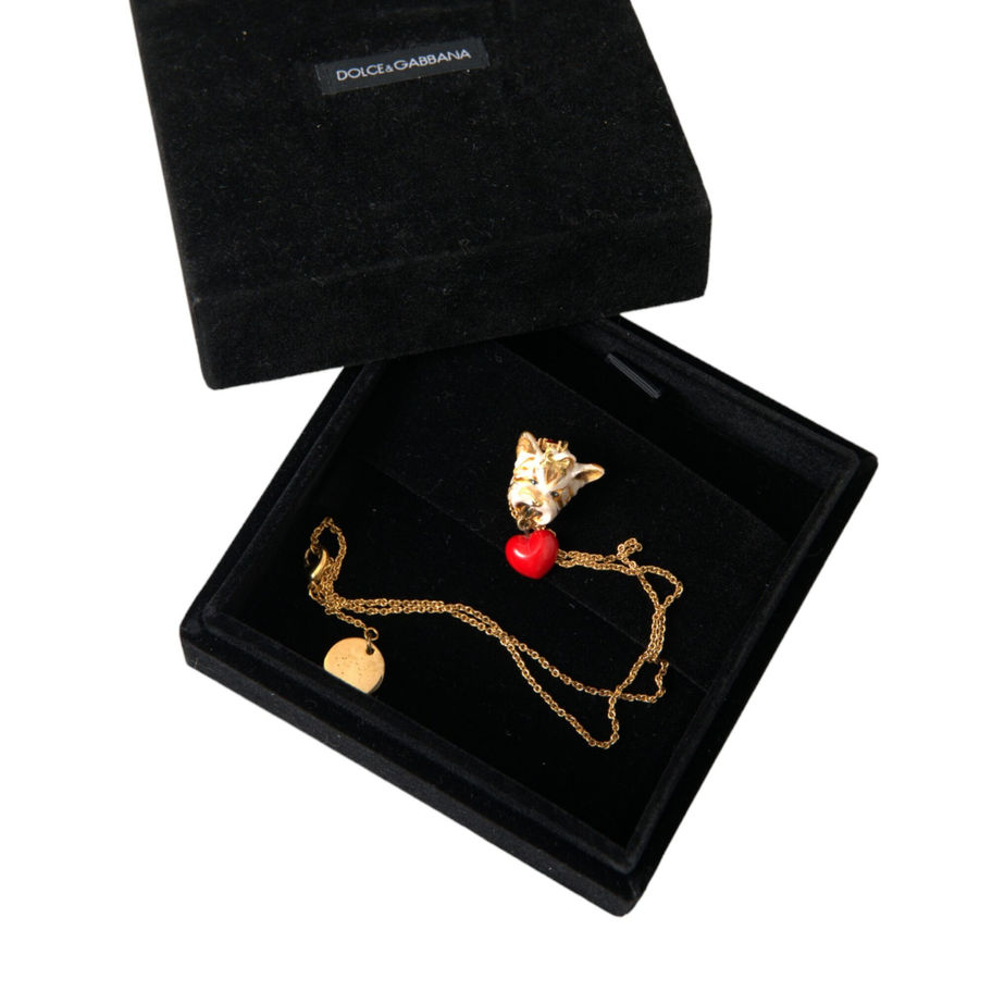 Gold Brass Chain Dog Heart Pendant Charm Necklace