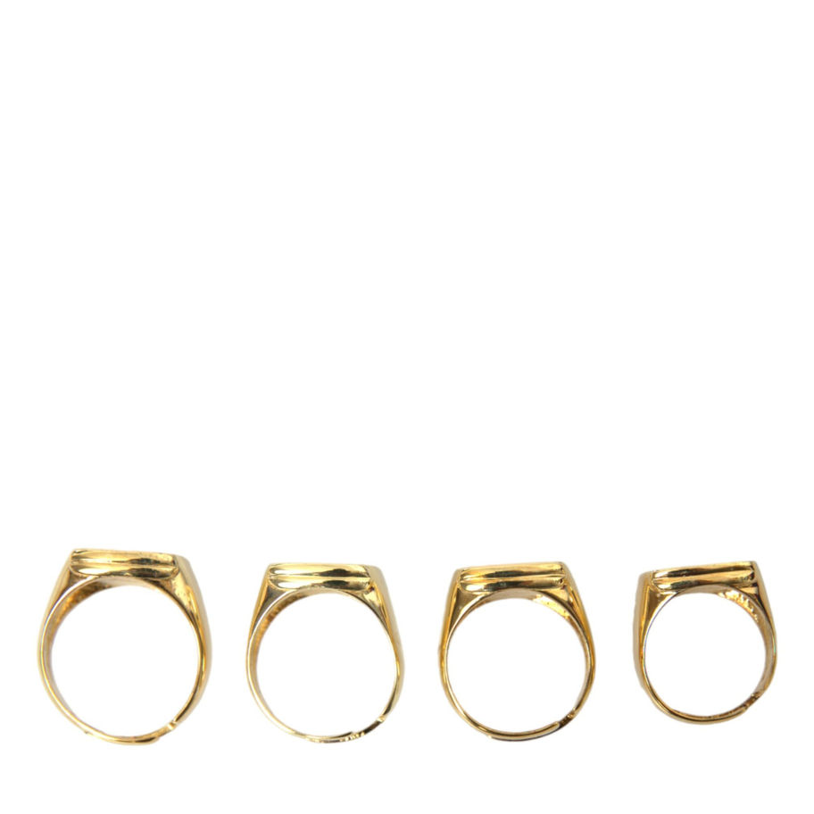 Gorgeous brand new with tags 100% Authentic Dolce & Gabbana set of four signet rings in gold-tone brass. Black enamel finish and mismatched lettering at faces. Gender: Men Model: Statement Material: 90% Brass 10% Enamel Inside circumference: 54mm, 60mm, 62mm, 66mm Logo details Made in Italy