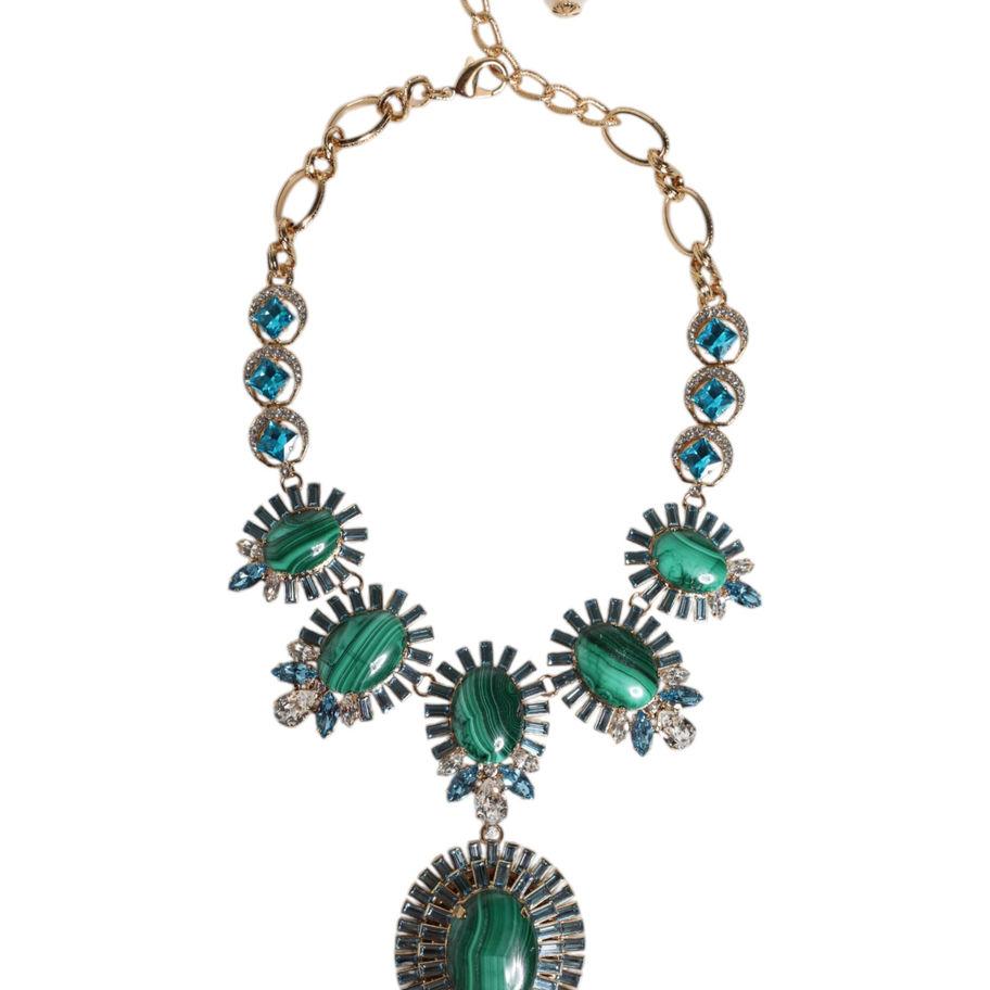 Gorgeous brand new, 100% Authentic Dolce & Gabbana gold plated brass jewelry. Item#: WNL8P5 W1111 Color: Gold, Green Model: Pendant necklace Material: 40% Brass 30% Gem 20% Crystal 10% Plastic Length: 45cm Lobster clasp closure Logo Details Made in Italy Very exclusive and rare