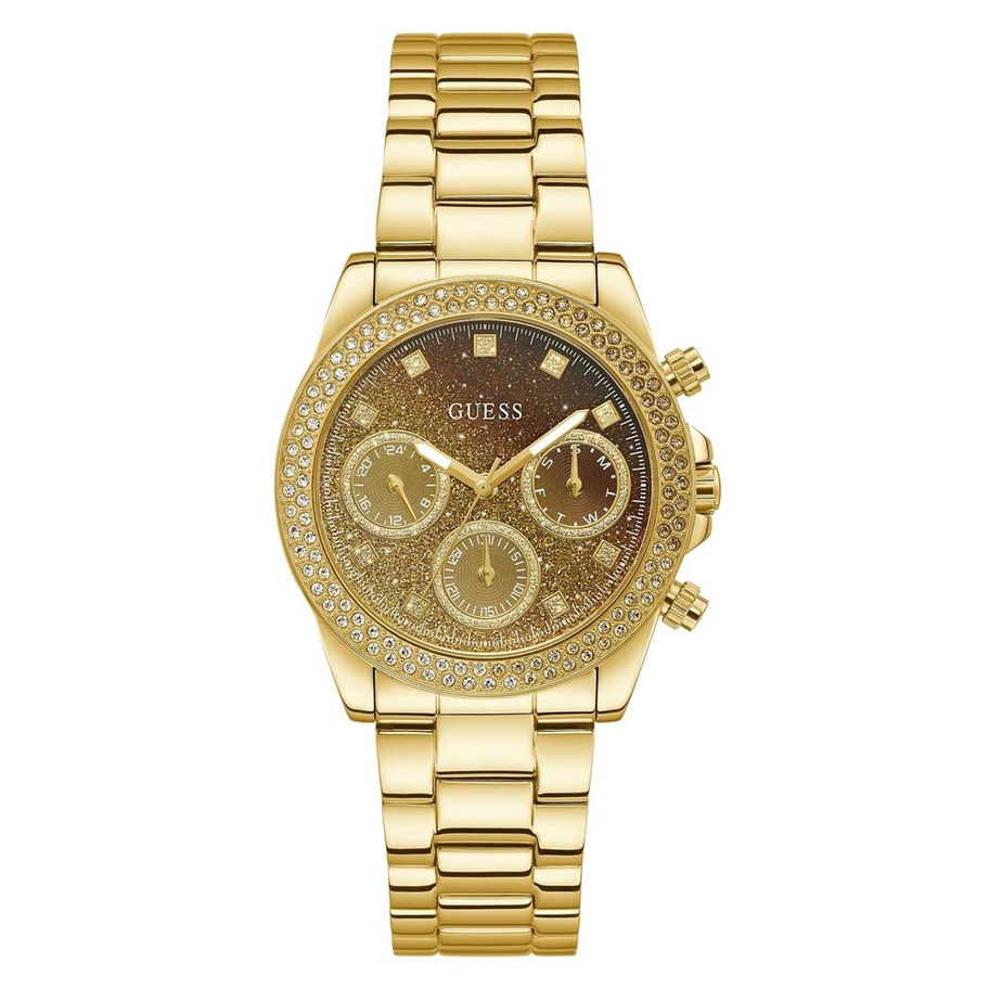 Type of mechanism: QUARTZ. Display: ANALOGICAL. Material Of Case: STAINLESS STEEL. Colour Of Case: GOLDEN. Material Of Bracelet: STAINLESS STEEL. Colour Of Bracelet: GOLDEN. Dial Colour:GOLDEN. Glass type: MINERAL. Clousure: BUTTERFLY. Water resistence: NO. Diameter dial: 38MM. Special Functions:SUN DATE