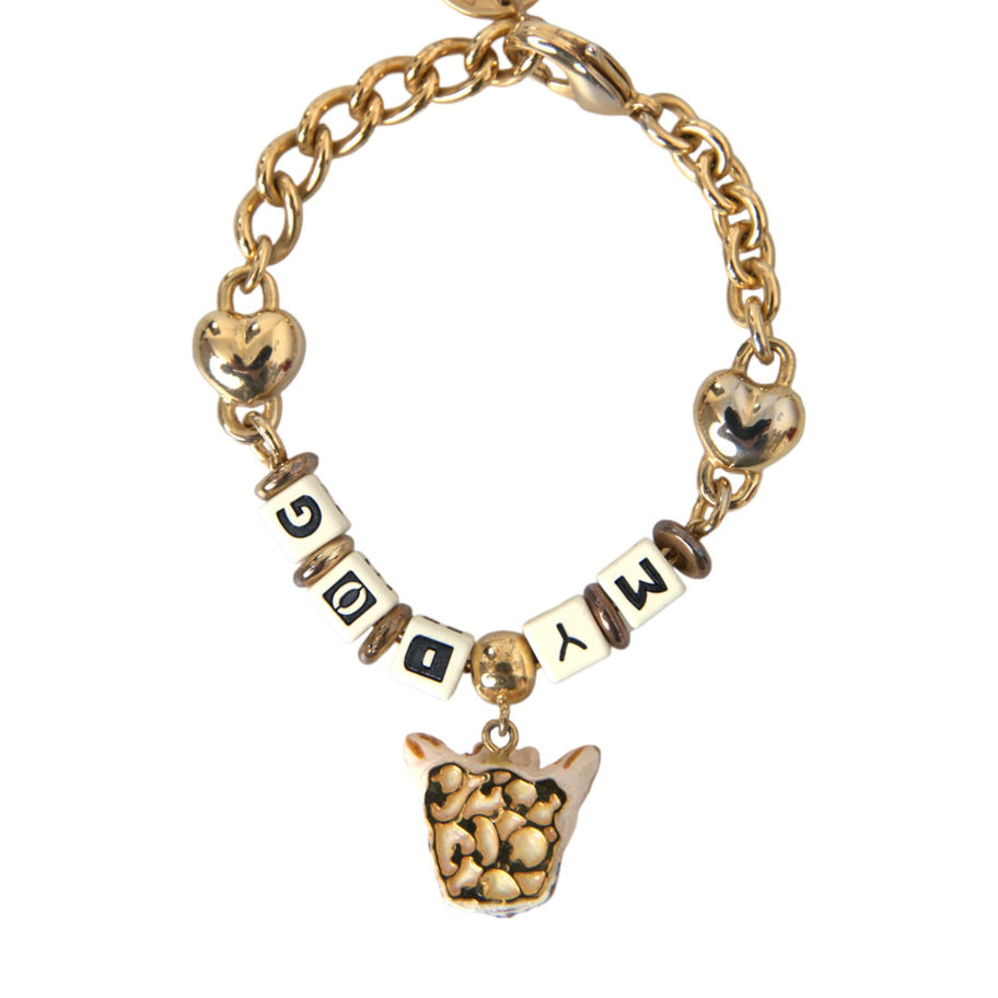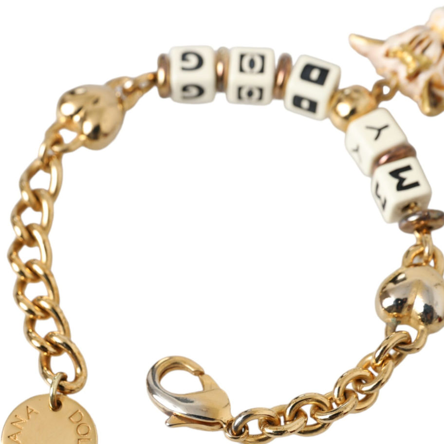 Gorgeous 100% Authentic brand new with tags Dolce & Gabbana brass with cold painted enamel dog face. Model: Charm bracelet Material: 60% Brass 40% Resin Color: Gold with multicolored details Gender: Women Length: 20cm Lobster closure Logo details Made in Italy