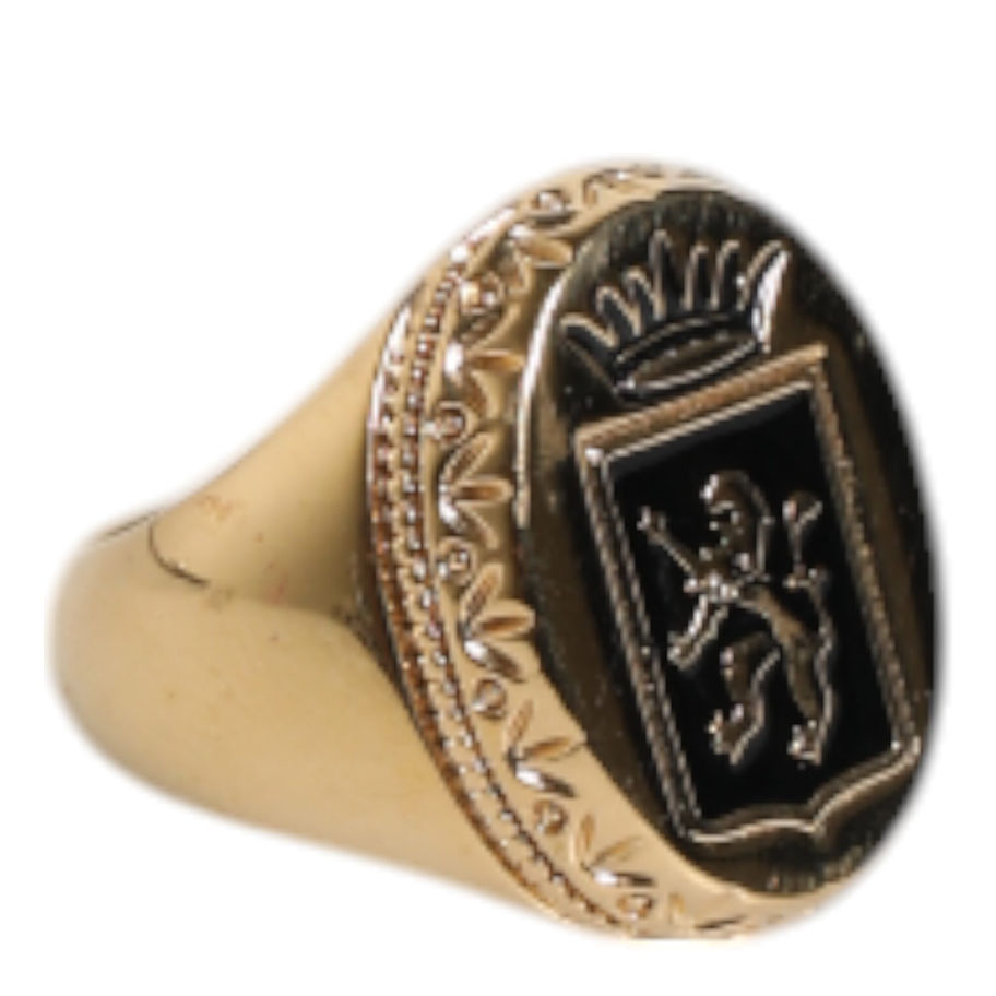 Gold Tone Engraved Logo Two Color Jewelry Ring