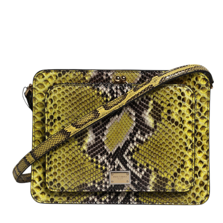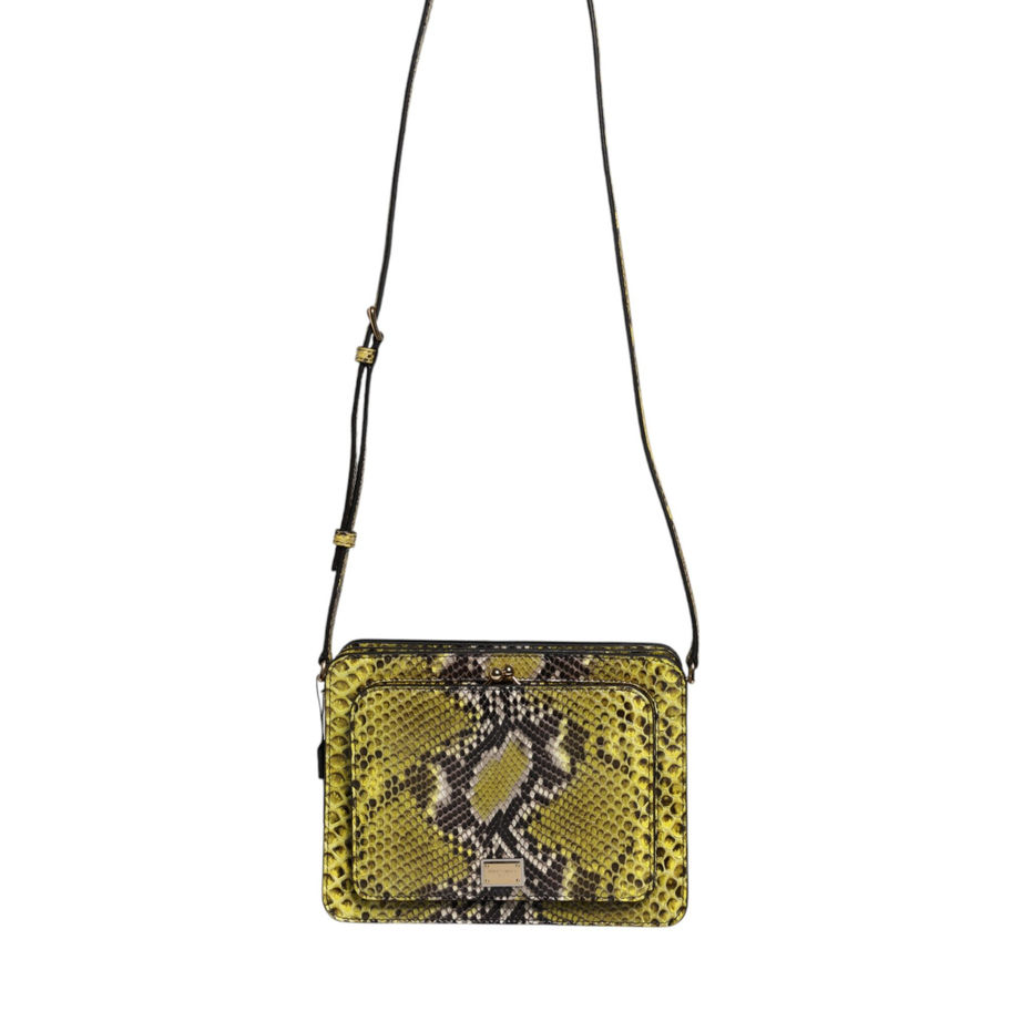 Gorgeous brand new, 100% Authentic Dolce & Gabbana crossbody bag. The bag features a removable leather shoulder strap and a gold DG logo plaque. The front flap opens to a leather and fabric interior with pockets. Model: Crossbody bag Color: Green Material: Python Leather Strap: Adjustable strap Zipper and clasp closure Logo engraved metal hardware Made in Italy Measurements: 24cm x 18cm x 5cm Strap: 135cm x 1.5cm