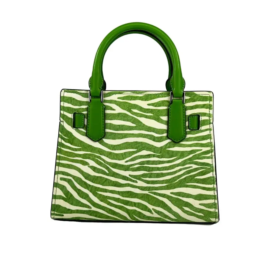 Hamilton Small Leather Zebra Print Satchel Crossbody Jungle Green