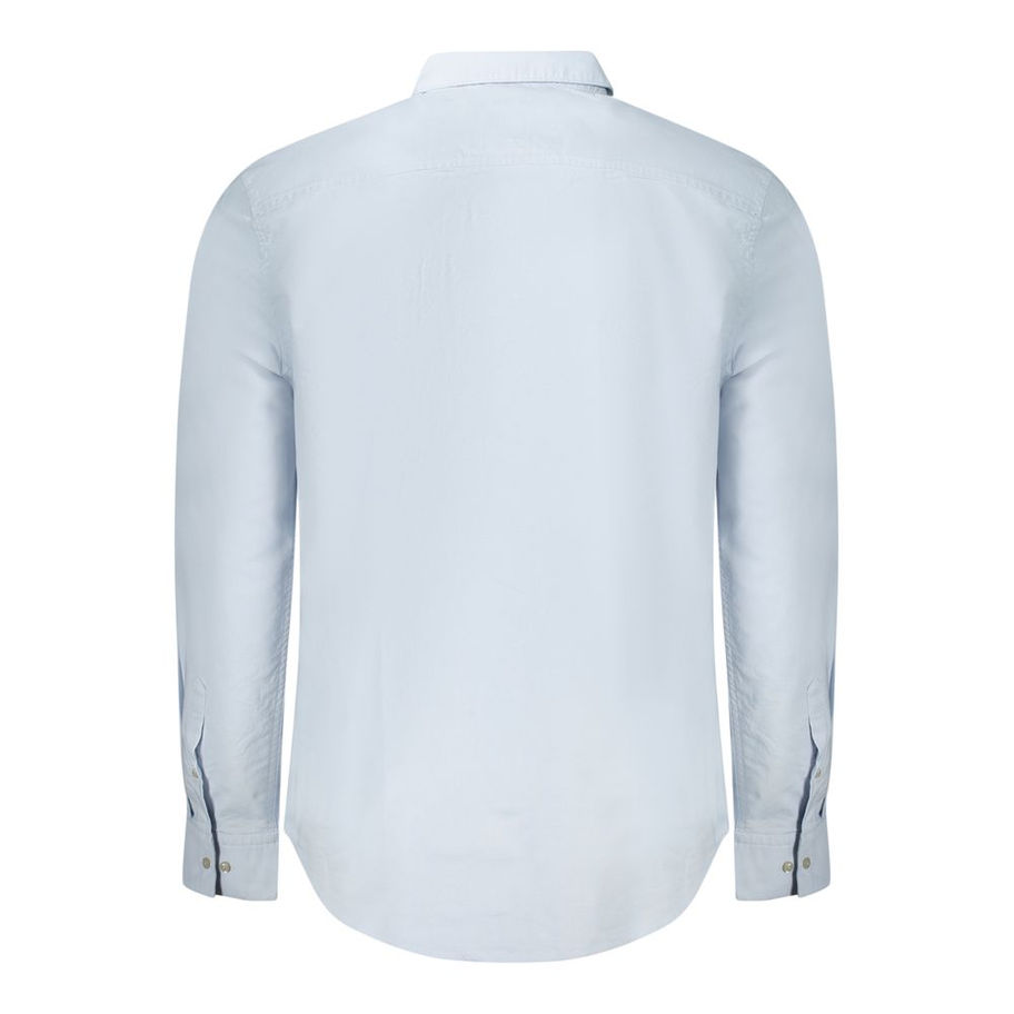 Elevate your wardrobe with the timeless sophistication of Calvin Klein. Tailored for a classic fit, this long sleeve shirt features a sharp button-down collar and adjustable 2-button cuffs. Detailed with exquisite embroidery and the iconic CK logo, it’s a testament to understated elegance. Crafted from premium cotton with a hint of stretch for comfort, in a serene light blue, it’s a versatile piece for both casual and formal settings.