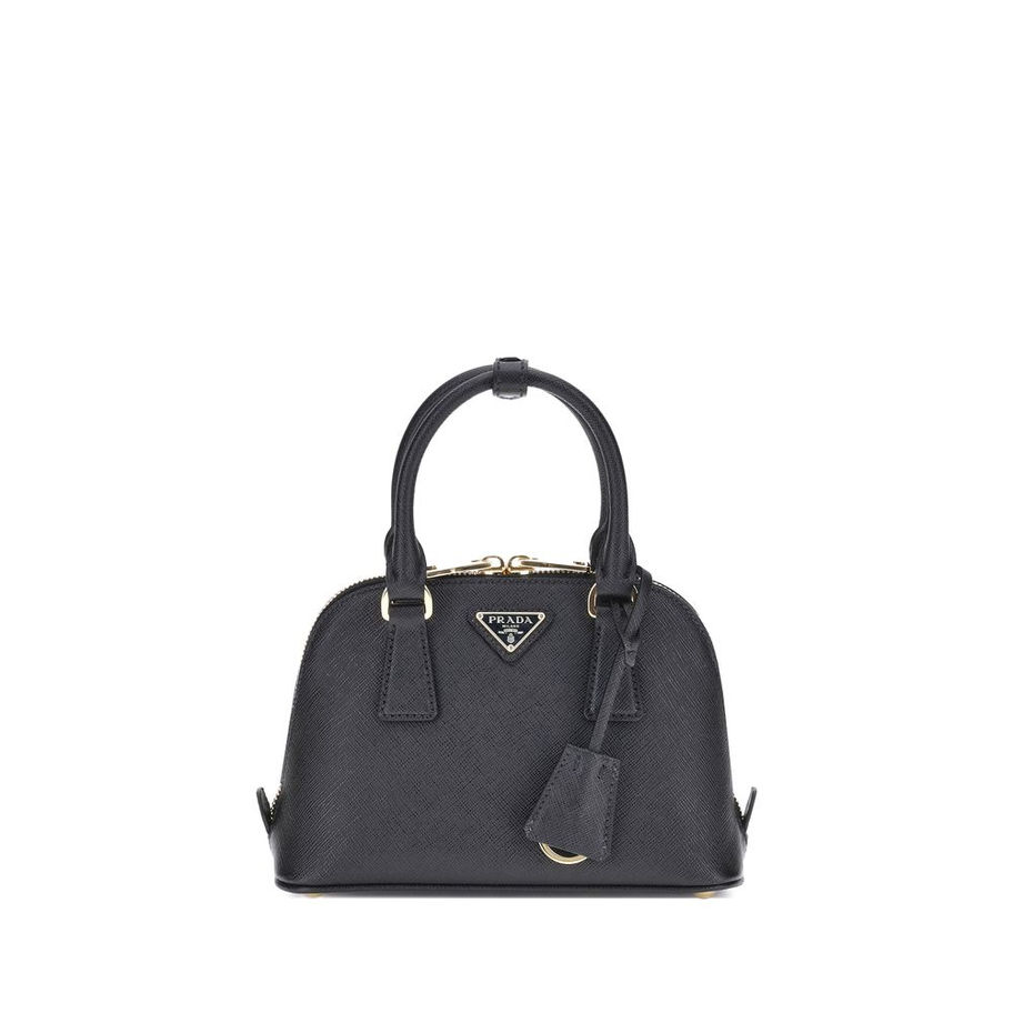 The Prada leather Handbag features two tubular top handles for a comfortable and secure grip. The top zip closure ensures protection and ease of use. The famous triangular logo patch, an iconic symbol of the brand, stands out on the front. The interior is composed of a single large compartment, ideal for holding everything you need in style.