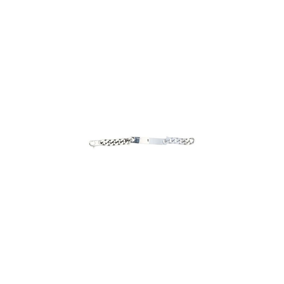 Minimal Logo ID Tag Bracelet by MM6, featuring a lobster clasp and chain design. The front metal plaque is embellished with the brand’s iconic number graphic, for an essential accessory with a contemporary style.