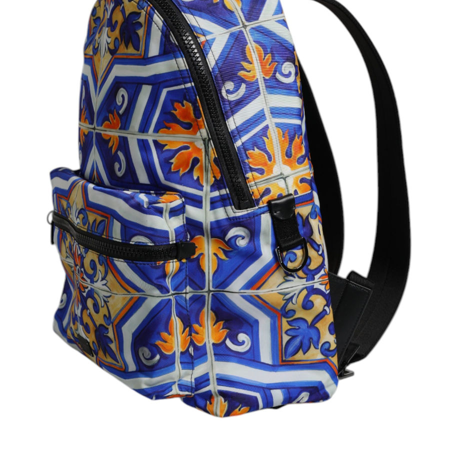 Multicolor Majolica Print Nylon Travel Backpack Bag