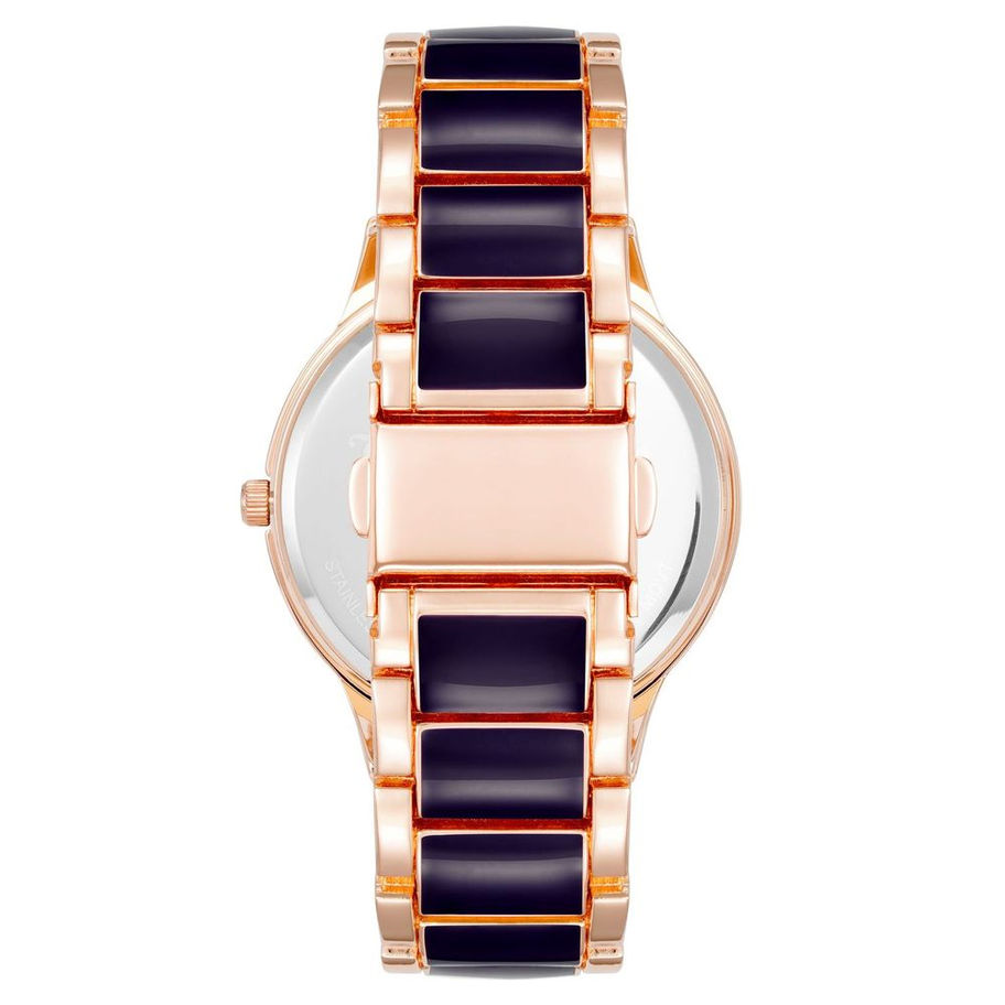 Type of mechanism: QUARTZ. Display: ANALOGICAL. Material Of Case: METAL. Colour Of Case: PINK. Material Of Bracelet: METAL. Colour Of Bracelet: MULTICOLORED. Dial Colour:LILAC. Glass type: MINERAL. Clousure: FOLDING. Water resistence: NO. Diameter dial: 38 MM. Special Functions: