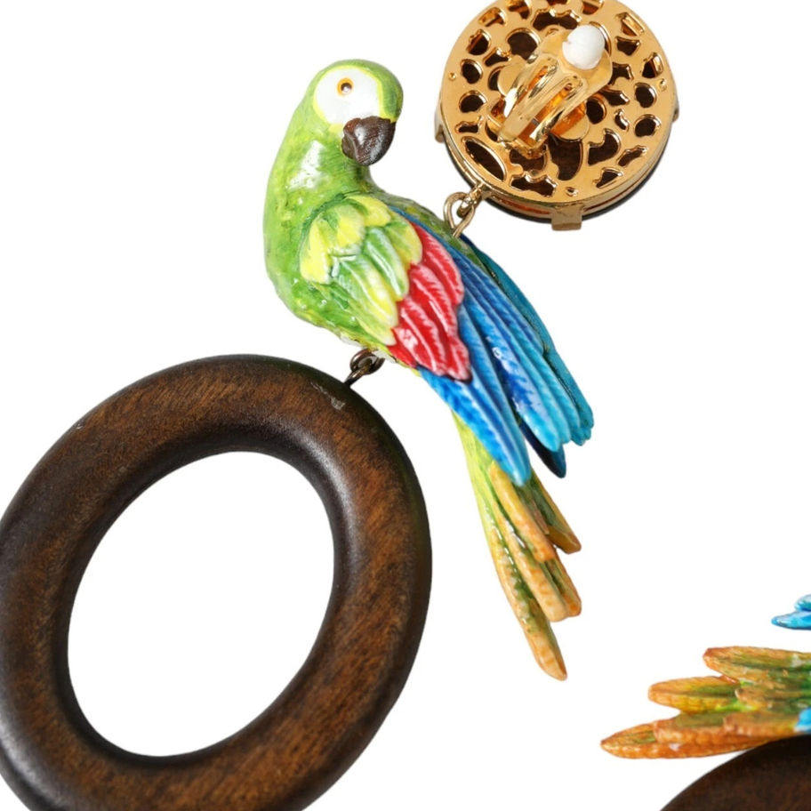Gorgeous brand new with tags, 100% Authentic Dolce & Gabbana embellished earrings. Model: Clip-on dangling Motive: Parrot Material: 30% Wood 30% Resin 20% Real Brass 20% Glass Color: Multicolor Logo details Made in Italy Length: 10cm
