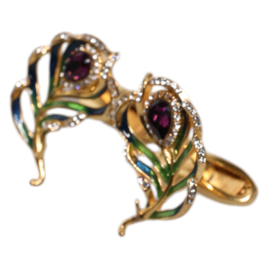 Multicolor Peacock Feathers 925 Sterling Silver Cufflink