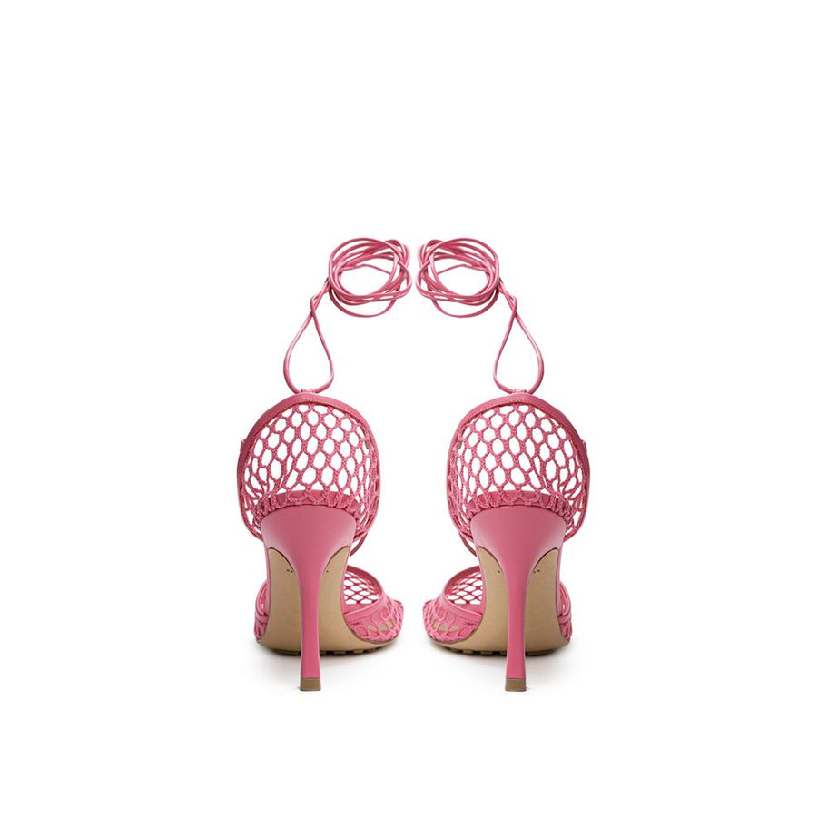 Stretch Mesh Sandals in Pink Bottega Veneta. Square toe, stretch mesh upper with tone-on-tone leather trim, lace-up closure. Leather outsole with rubber inserts. Composition: Cotton, Leather Internal SKU: 25MG23 Brand SKU: 651388VBSD35963