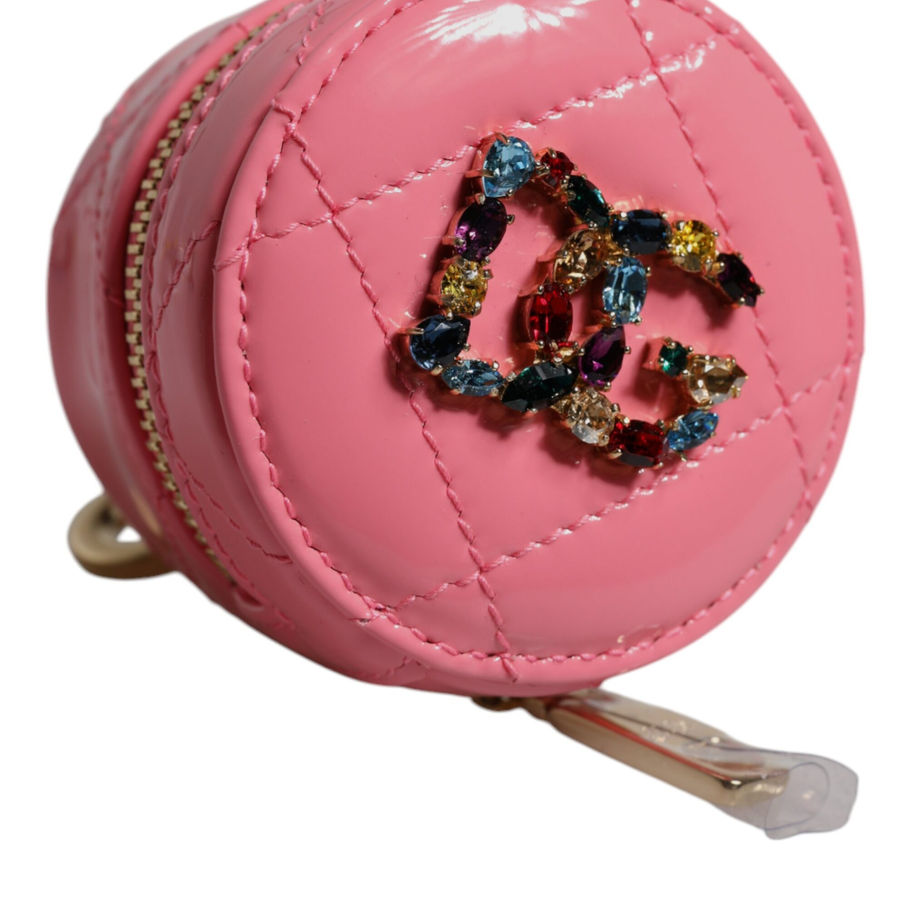 Pink Lamb Leather DG Crystal Round Coin Purse Wallet