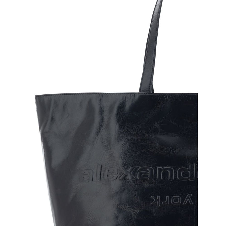 The Alexander Wang leather Punch Tote Bag combines functionality and style in an essential, contemporary design. Featuring double fixed handles and an interior drawstring closure, it offers a single large main compartment enhanced by an interior zipper pocket and a flat pocket for better organization. The tone-on-tone embossed logo on the front adds a refined detail, while the twill lining completes the design with a touch of quality and durability.