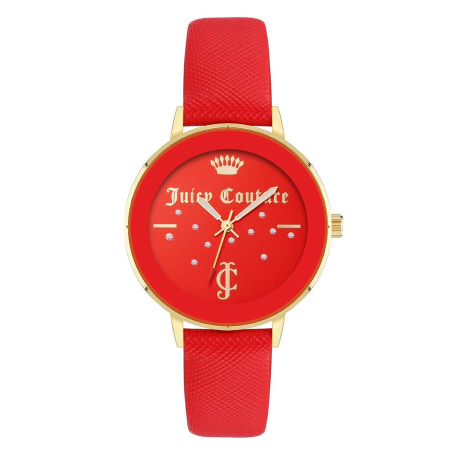 Type of mechanism: QUARTZ. Display: ANALOGICAL. Material Of Case: METAL. Colour Of Case: GOLDEN. Material Of Bracelet: POLIPRIEL. Colour Of Bracelet: RED. Dial Colour:RED. Glass type: MINERAL. Clousure: BUCKLE. Water resistence: NO. Diameter dial: 38 MM. Special Functions: