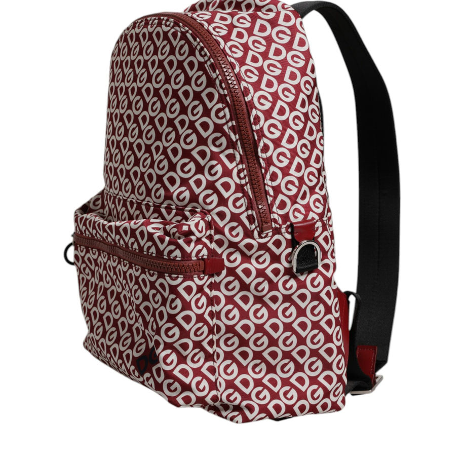 Red White DG Logo Print Nylon Travel Backpack Bag