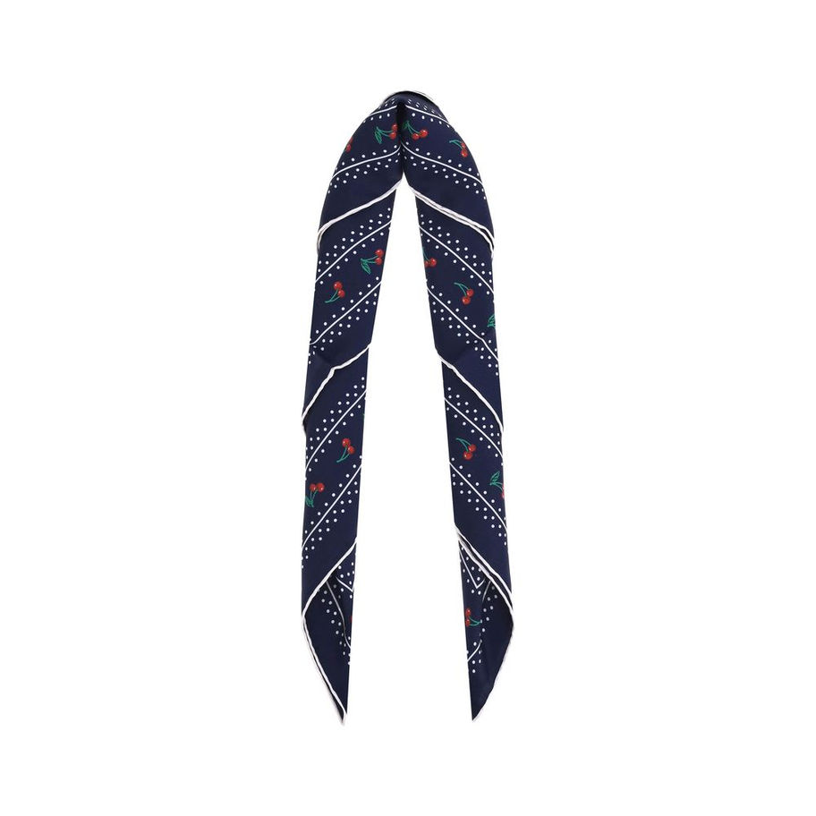 The Cherryfic Foulard by Valentino Garavani is a refined and lively accessory made of fine silk. Featuring a playful pattern with cherries and polka dots, it combines classic elegance and ironic spirit. The brand logo, discreetly placed in a corner, signs the design with an iconic touch. Perfect for adding color and personality to both casual and more sophisticated looks.