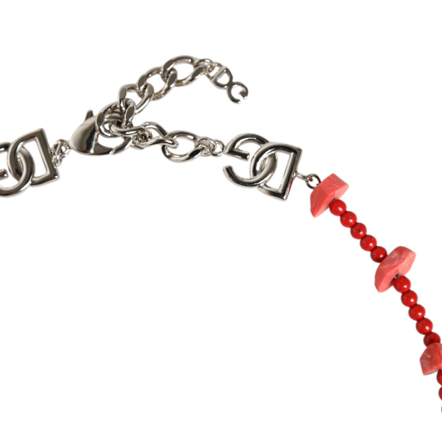 Gorgeous 100% Authentic brand new with tags Dolce & Gabbana silver brass chain beaded necklace with lobster clasp closure. Model: Beaded necklace Material: 70% Real Brass 30% Resin Color: Silver, Red Length: 48cm Lobster clasp closure Logo details Made in Italy