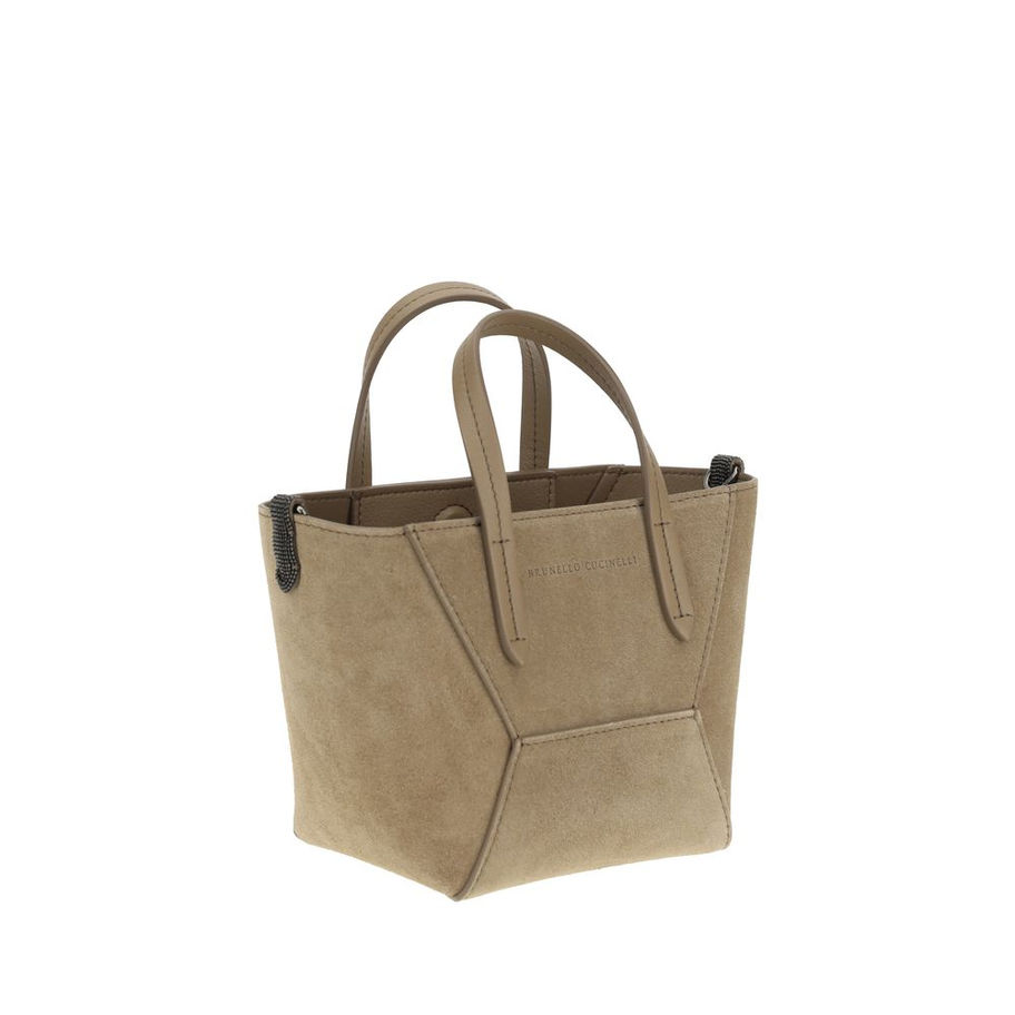 Brunello Cucinelli’s suede leather Shoulder Bag combines craftsmanship and sophistication. Featuring two top handles and an adjustable and removable flat shoulder strap, it offers versatility and comfort. The paneled design enhances the elegant structure, while the iconic monogram on the front panel adds a distinctive touch. The interior magnetic button closure ensures practicality, and the iconic shiny jewels on the side panels lend brightness and sophistication. The single interior compartment ensures space and functionality, perfect for discreet and timeless elegance.