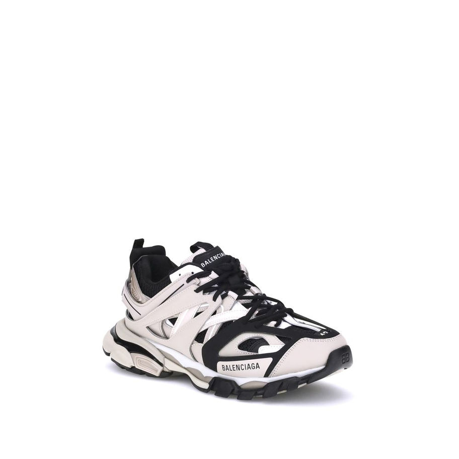 Balenciaga’s Track Sneakers combine performance and cutting-edge design in a technical, urban aesthetic. Made of mesh and nylon, they are enhanced by a series of iconic details: written size on the toe, embossed Track logo on the heel, BB logo on the front sole, and printed logo on the outer side. The tongue features an embossed logo and a loop, also echoed on the heel for easy donning. The double laces are knotted in the traditional hiking style, while the dynamic sole, accentuated on the back, provides comfort and stability. A model designed for those seeking style, functionality and a strong identity.