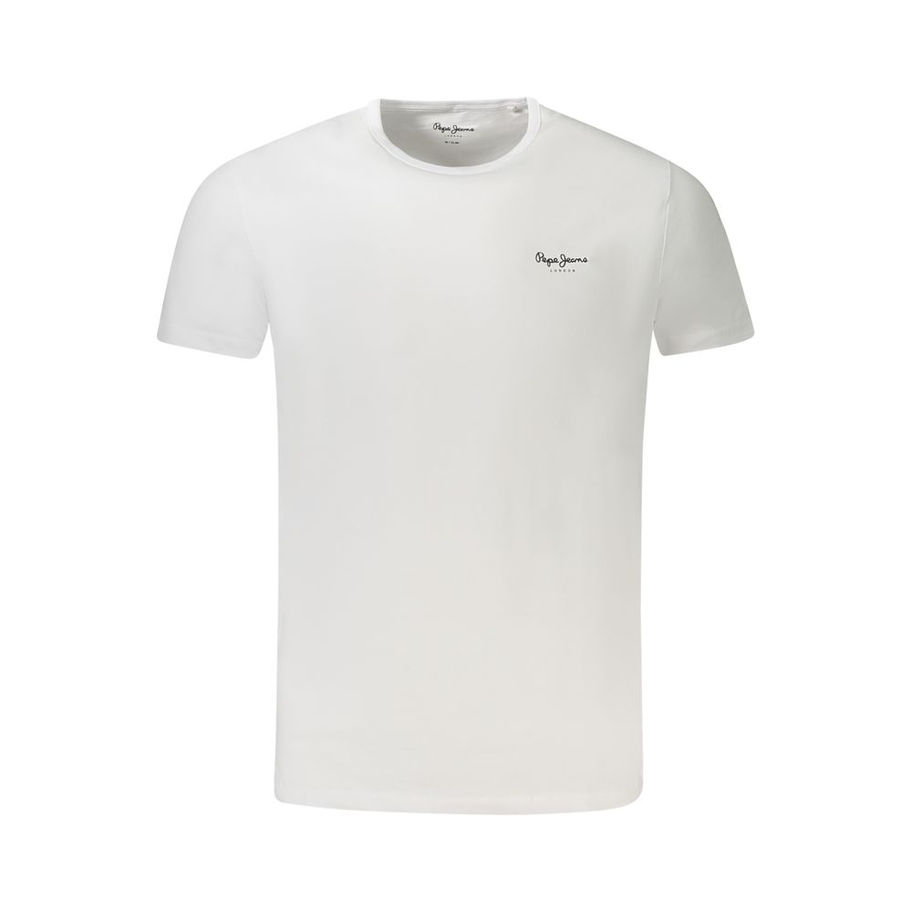Elevate your wardrobe with this crisp, white Pepe Jeans tee, a seamless blend of sustainability and style. Boasting a slim fit that contours gracefully to your form, this T-shirt features a bold crew neck, short sleeves, and an eye-catching print complemented by the iconic Pepe Jeans logo. Crafted from a premium blend of 95% cotton and 5% elastane, it promises both comfort and durability. Perfect for the fashion-forward individual ready to make a statement. Be confident, be trendy, be you with Pepe Jeans.