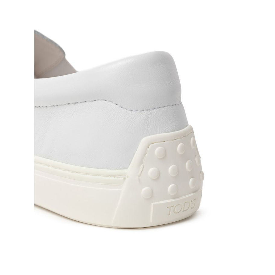 Tod’s White Leather Casual Cassetta Slip on. Round toe, two elastic bands on the sides, tone-on-tone rubber sole, printed logo on the back. Size UK8.5/EU42.5-43 Composition: Leather Brand SKU: XXMO3E0EB50JUSB001 Internal SKU: 25MAR127